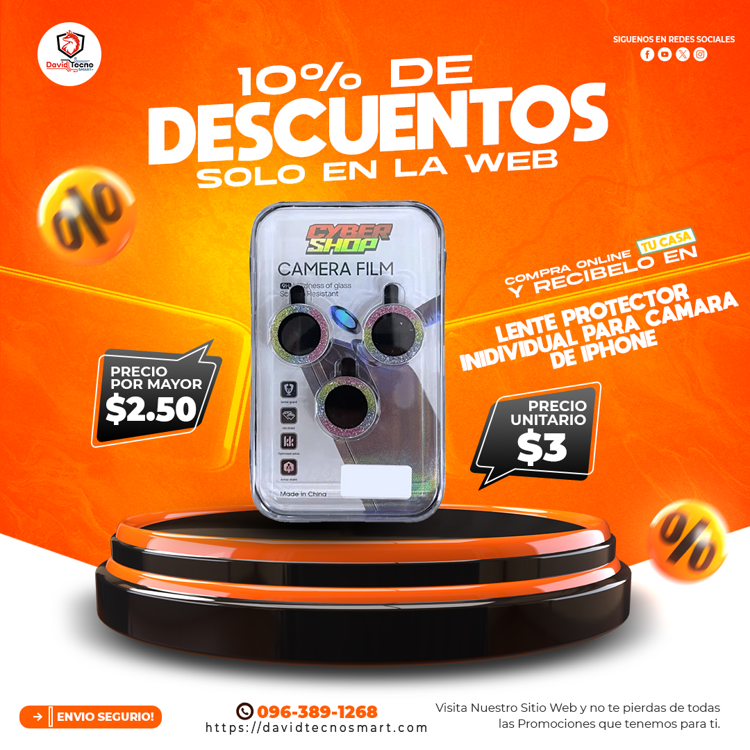 ¡Protege tu cámara con estilo! 😎 Evita rayones y daños, manteniendo la calidad de tus fotos y videos impecable. 📱 ¡No más preocupaciones por la lente de tu iPhone!